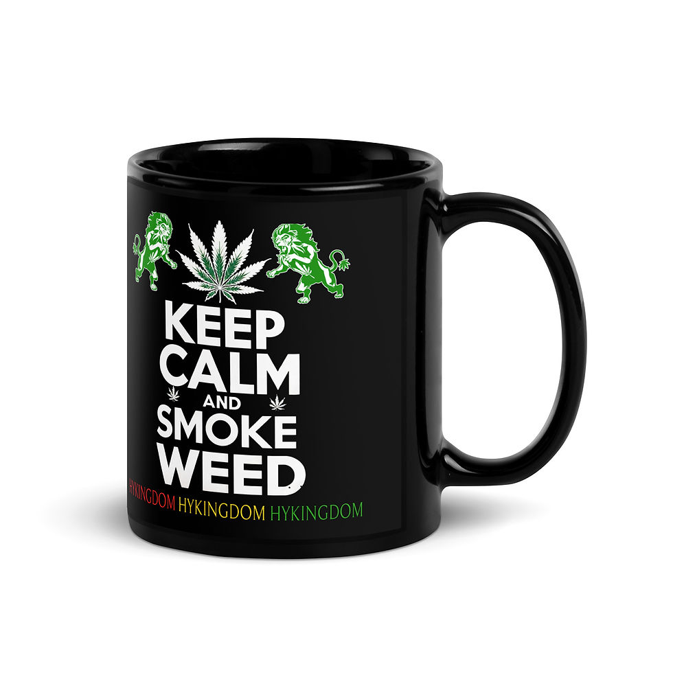 Black Glossy Mug-Keep calm and smoke weed-Black