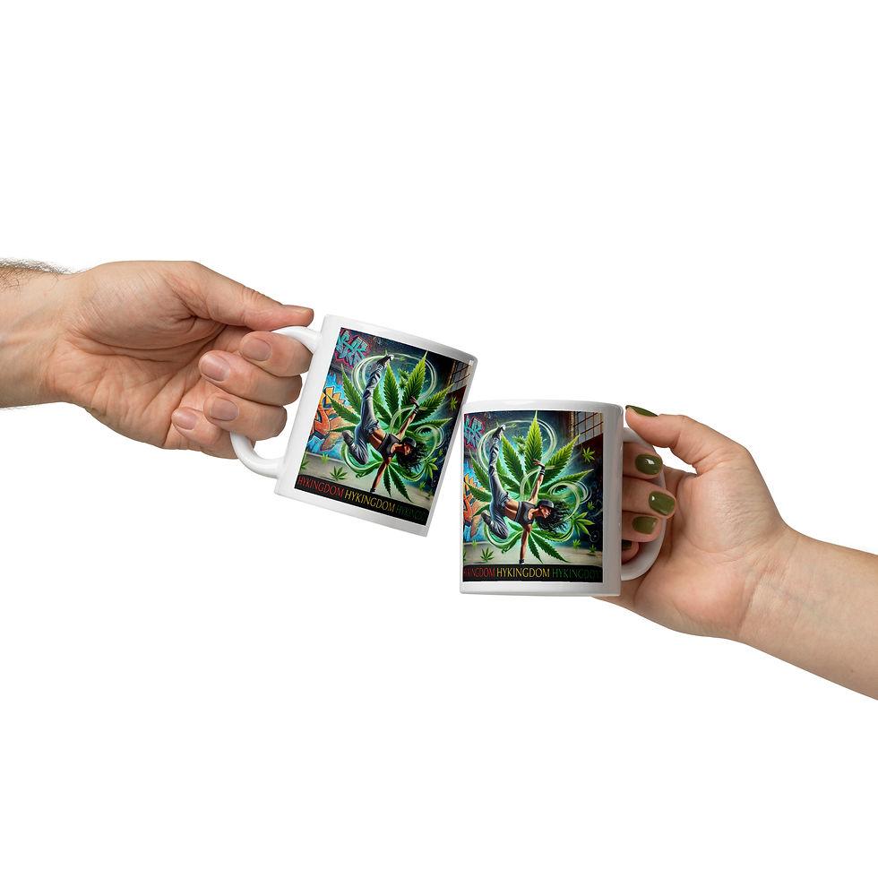 White glossy mug-Hykingdom Lion Logo-Green/white